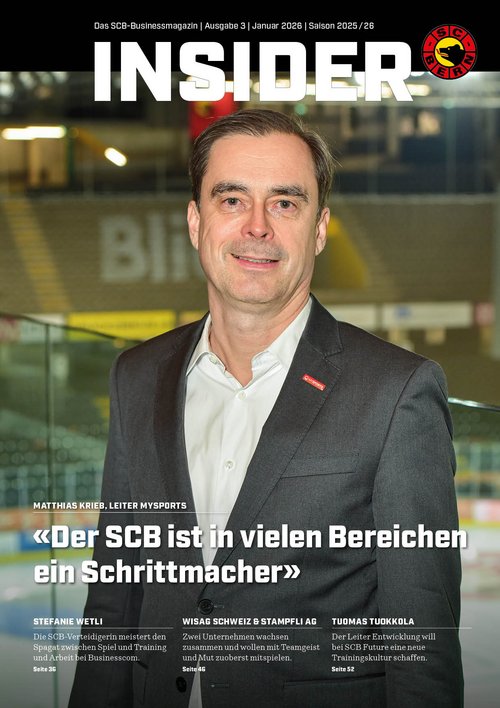 Das Business-Magazin INSIDER ist das Leitmedium der Kennerinnen und Kenner der SCB-Szene. Es wird allen rund 400 Sponsoren, Partnern, Membern sowie Kundinnen und Kunden zugestellt und enthält relevante und exklusive Informationen aus dem Innenleben des SCB.