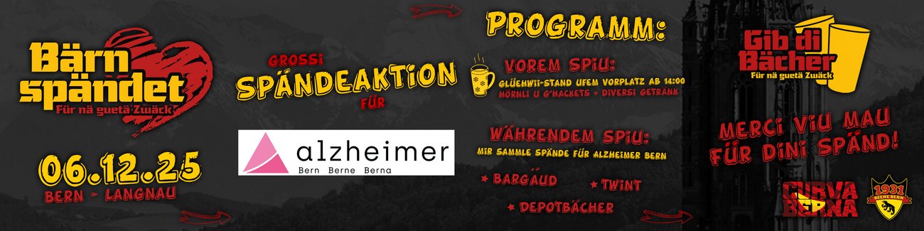 - Ab 14.00 Uhr: Spendenaktion für Alzheimer Bern von Curva Berna und Szene Bern