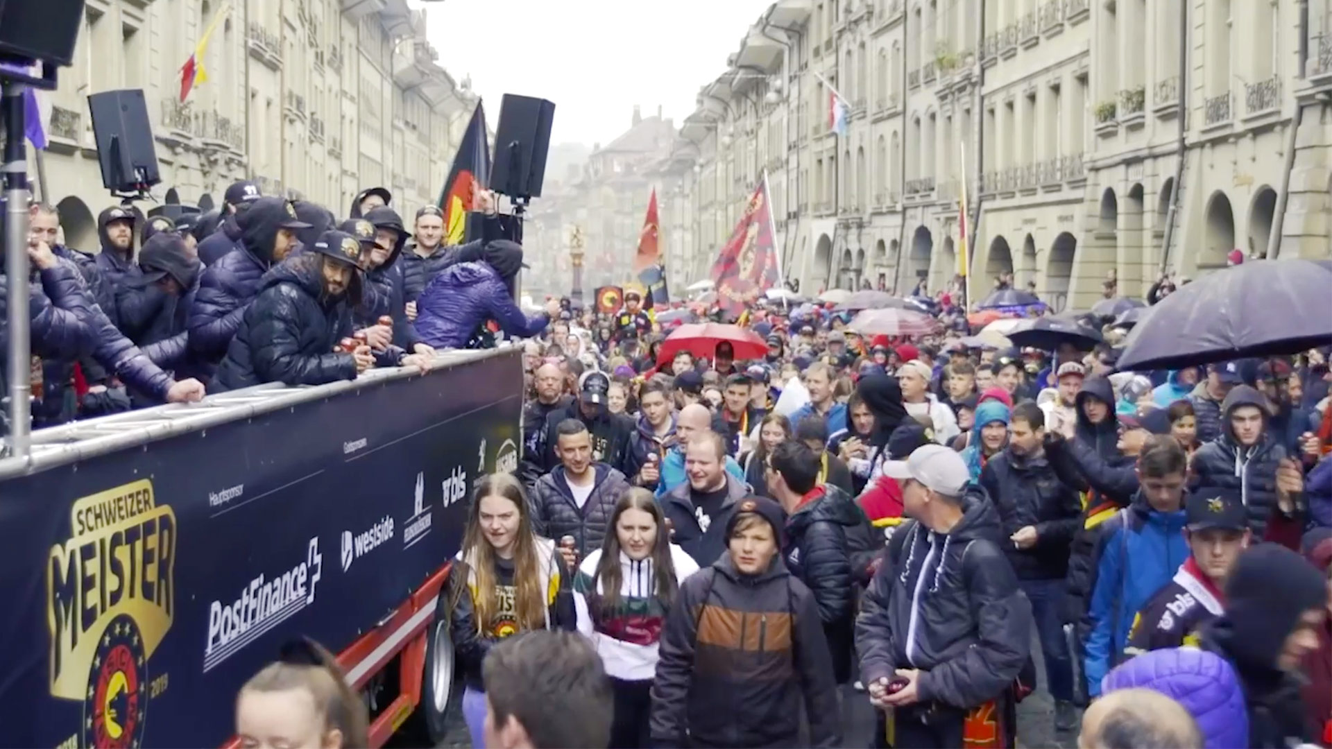 ...die Freude jedoch ungetrübt. Der SCB feierte seinen eine Woche zuvor gegen den EV Zug errungenen 16. Meistertitel mit dem feucht-fröhlichen Umzug durch die Stadt und der Meisterparty auf dem Bundesplatz.